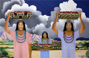 Traditional pottery production fades out as Ak-Chin O’odham import readymade wares from nearby towns. In the 1930’s, only a handful of traditional O’odham potters remain in the Ak-Chin village. The Saint Francis Mission School is constructed and children no longer attended classes in the chapel. Ak-Chin children attended up to the fourth grade and were prohibited from speaking O’odham in school.